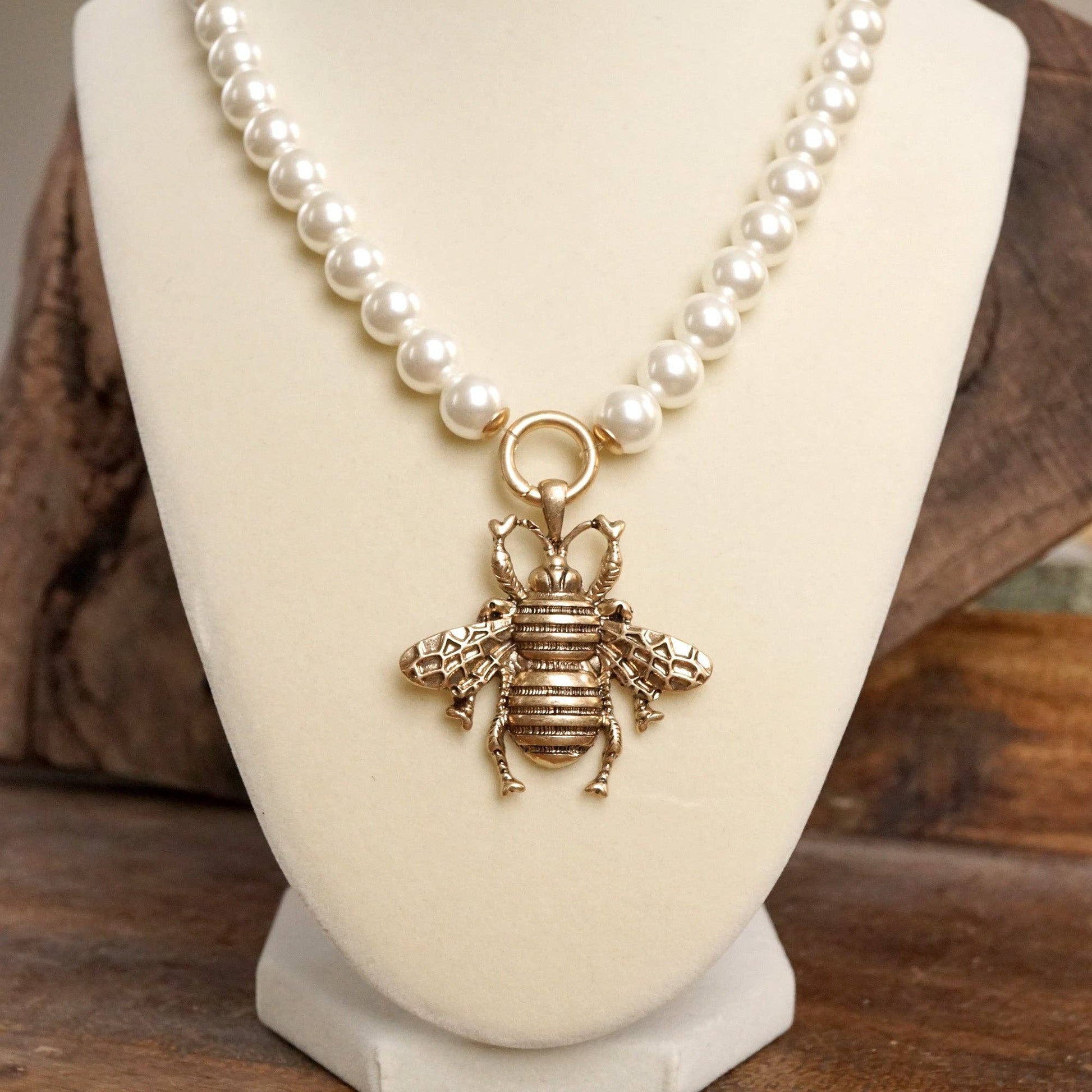 Boho Bee Pearls Statement Necklace – Worn Gold
